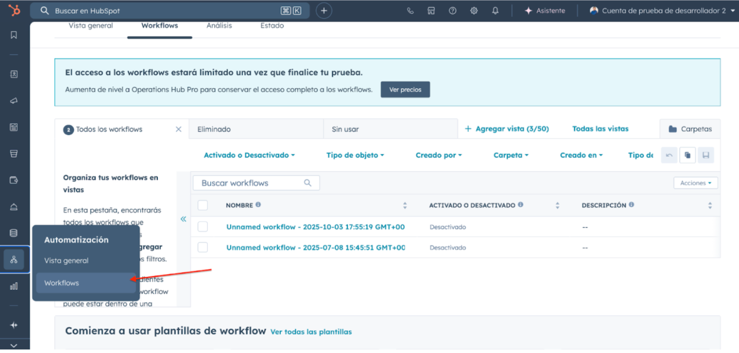 2. Crea o Edita un Workflow: Abre el flujo de trabajo donde quieres añadir la lógica personalizada.